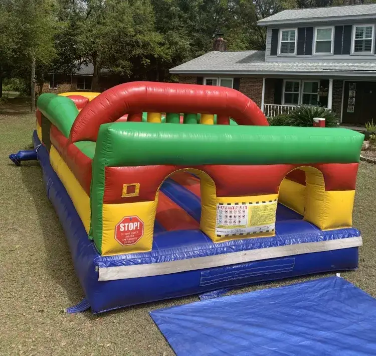 - OCCUPANCY: A maximum of 5-6 kids of equal size at one time for bounce houses, and 1 person at a time for slides is what most inflatable manufacturers recommend.